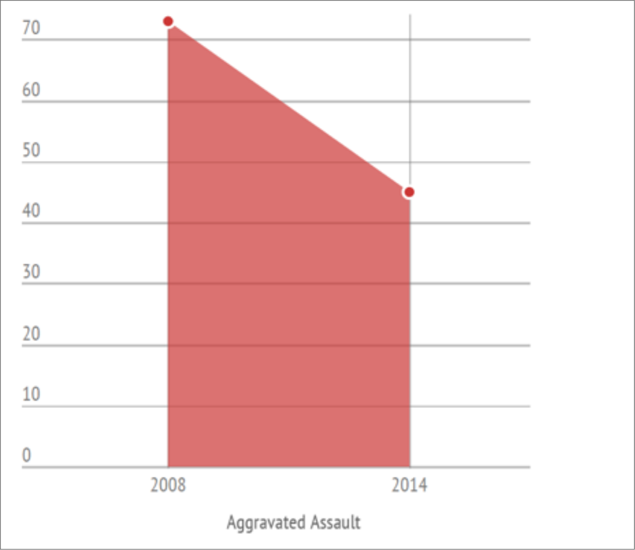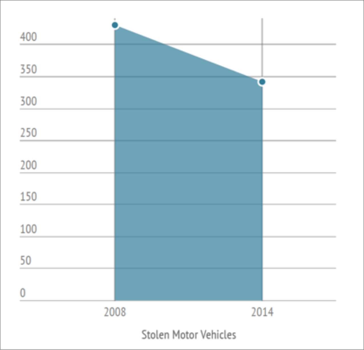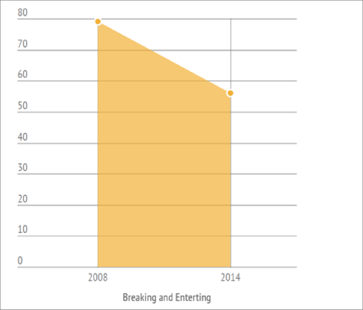 There was an increase in reported crimes in two areas: robbery and stolen motor vehicles. Robberies increased by 43 percent, with 40 reported. Three dozen vehicles were reported stolen in 2014, an increase of one when compared to 2008. Three rapes were reported seven years ago while none were in 2014. No murders were committed in the area either year.